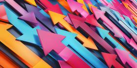 Colorful collection of arrows pointing in various directions background - Ai Generated