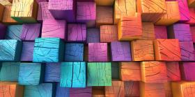 Colorful small wooden blocks aligned background - Ai Generated