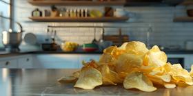Crispy potato chips in Kitchen background - Ai Generated