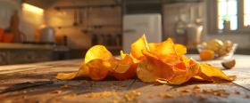 Crispy potato chips in Kitchen background - Ai Generated