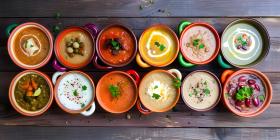 Different Kind of Soups in a different bowls top view - Ai Generated