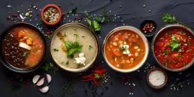 Different Kind of Soups in a different bowls top view - Ai Generated