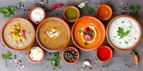 Different Kind of Soups in a different bowls top view - Ai Generated