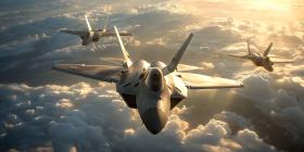 Fighter Jets Soaring in the Sky, Airborne Fighter Jets Scene, Aerial Background with Fighter Jets - Ai Generated