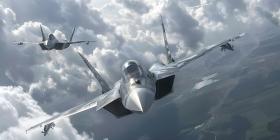 Fighter Jets Soaring in the Sky, Airborne Fighter Jets Scene, Aerial Background with Fighter Jets - Ai Generated