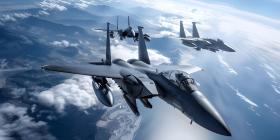 Fighter Jets Soaring in the Sky, Airborne Fighter Jets Scene, Aerial Background with Fighter Jets - Ai Generated