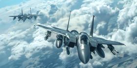 Fighter Jets Soaring in the Sky, Airborne Fighter Jets Scene, Aerial Background with Fighter Jets - Ai Generated