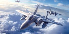 Fighter Jets Soaring in the Sky, Airborne Fighter Jets Scene, Aerial Background with Fighter Jets - Ai Generated