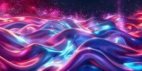 Vibrant Neon Waves Backdrop, Luminous Fluid Motion Background, Neon Flowing Waves Scene - Ai Generated