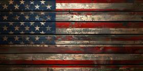 National flag of the United States of America on an old wooden table - Ai Generated
