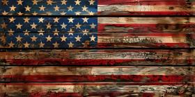 National flag of the United States of America on an old wooden table - Ai Generated