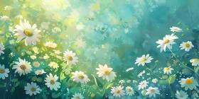 Whimsical Daisies flowers background, Dreamy Daisy Flower Field Scene, Charming Daisy Floral Fantasy - Ai Generated