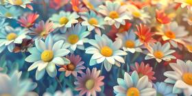 Whimsical Daisies flowers background, Dreamy Daisy Flower Field Scene, Charming Daisy Floral Fantasy - Ai Generated