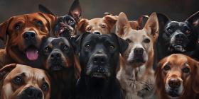 Dogs of different breeds happily gathered together and looking at camera background, - Ai Generated