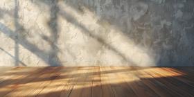 Empty wall and wooden floor with glare from the window - Ai Generated