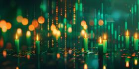 Stock Market Green candlestick pattern charts background - Ai Generated