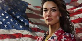 Female American in front of American flag - Ai Generated