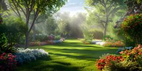 Beautiful garden during summer background - Ai Generated
