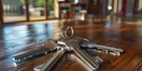 Keys on the table in new apartment with Blurred Background - Ai Generated