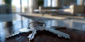 Keys on the table in new apartment with Blurred Background - Ai Generated