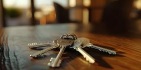 Keys on the table in new apartment with Blurred Background - Ai Generated