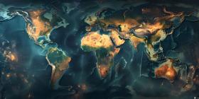 World map in which the areas appear burned and ocean is clean - Ai Generated