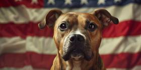 Patriot dog wearing a US flag background - Ai Generated