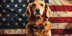Patriot dog wearing a US flag background - Ai Generated