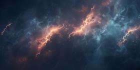 Dramatic Thunderstorm Lightning Sky Background, Electric Thunderstorm Lightning Strike Background - Ai Generated