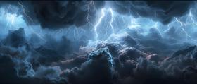 Dramatic Thunderstorm Lightning Sky Background, Electric Thunderstorm Lightning Strike Background - Ai Generated
