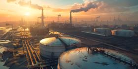 Industrial complex with a massive LNG storage tank - Ai Generated