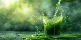 Pouring green juice into a glass background - Ai Generated