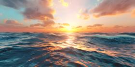 Seascape Sunrise Background, Ocean Sunrise Skyline, Sunrise Seascape View - Ai Generated