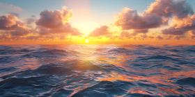 Seascape Sunrise Background, Ocean Sunrise Skyline, Sunrise Seascape View - Ai Generated