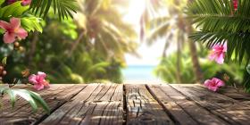 Tropical background wooden table background - Ai Generated