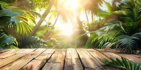 Tropical background wooden table background - Ai Generated