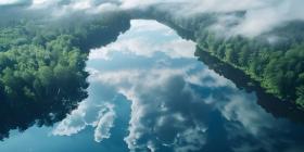 Sky Reflected in River: Aerial View Background, Background of River Reflecting Sky in Aerial View - Ai Generated