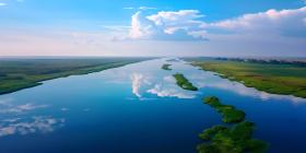 Sky Reflected in River: Aerial View Background, Background of River Reflecting Sky in Aerial View - Ai Generated