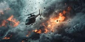 Helicopter Crash with Burning Wreckage Background, Fiery Helicopter Crash and Falling Debris Background - Ai Generated