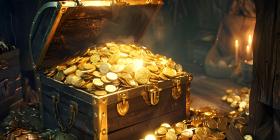 Treasure Trove: Overflowing Gold Coins, Wealth Abundance: Chest Full of Gold Coins - Ai Generated