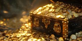 Treasure Trove: Overflowing Gold Coins, Wealth Abundance: Chest Full of Gold Coins - Ai Generated