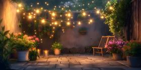 Outdoor Terrace: Cozy String Lights Ambiance, String Lights Adorned Outdoor Terrace Atmosphere - Ai Generated