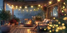 Outdoor Terrace: Cozy String Lights Ambiance, String Lights Adorned Outdoor Terrace Atmosphere - Ai Generated