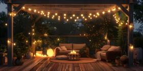 Outdoor Terrace: Cozy String Lights Ambiance, String Lights Adorned Outdoor Terrace Atmosphere - Ai Generated