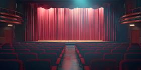 Cinematic Ambiance: Empty Movie Theatre with Stage Curtains Background, Theatrical Setting: Empty Stage and Movie Theatre with Curtains Background - Ai Generated
