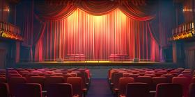 Cinematic Ambiance: Empty Movie Theatre with Stage Curtains Background, Theatrical Setting: Empty Stage and Movie Theatre with Curtains Background - Ai Generated