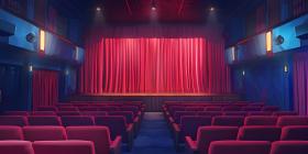 Cinematic Ambiance: Empty Movie Theatre with Stage Curtains Background, Theatrical Setting: Empty Stage and Movie Theatre with Curtains Background - Ai Generated