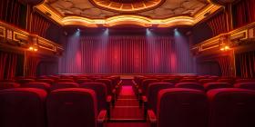 Cinematic Ambiance: Empty Movie Theatre with Stage Curtains Background, Theatrical Setting: Empty Stage and Movie Theatre with Curtains Background - Ai Generated