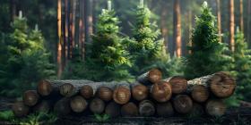 Forest pine and spruce trees Log trunks pile in forest background - Ai Generated