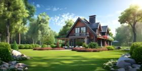 English Style Garden House with Expansive Green Lawn, Traditional English Garden House with Spacious Green Lawn - Ai Generated